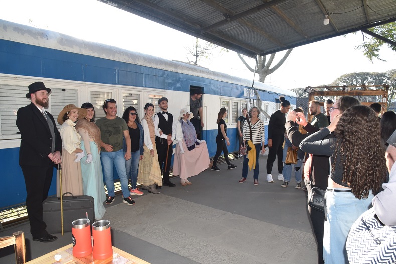 Sob a sombra do vagão, mateando com a filha, Rose Muller aprovou muito a proposta. “Acho que esta praça tem que ser mais aproveitada. O espaço é muito bom, grande, bonito para as crianças.” Ela contou ainda ter vivido um momento especial ao entrar no vagão para assistir à apresentação de teatro: “Cheguei a usar esta estação para embarque de trem há muitos anos e reviver essa experiência foi como uma viagem no tempo.”
