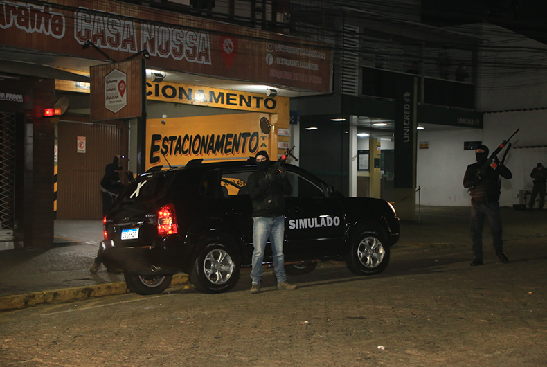 Os PMs foram colocadas à prova para reproduzir um assalto à mão armada, considerado um dos delitos mais graves a ocorrer em uma comunidade, devido ao alto grau de periculosidade e probabilidade de mortos e feridos. Tal qual os exemplos já vistos ao longo dos últimos anos, nos simulados dessa segunda, que iniciou às 21 horas no Banco do Brasil e na Protege, assaltantes portando armas longas se aproximaram dos alvos e renderam as vítimas que estavam no local.