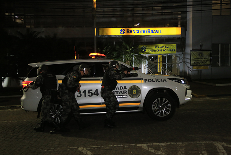 Em uma coletiva antes do simulado, o coronel Douglas da Rosa Soares ressaltou o apoio das demais entidades. “Nosso objetivo é buscar que haja uma sinergia quando acontecer algo que fuja da normalidade, como é o caso de assalto a banco, em um município como é Santa Cruz. E para tal, em havendo isso, muitas forças da BM também vão ser alocadas na região”, afirmou.