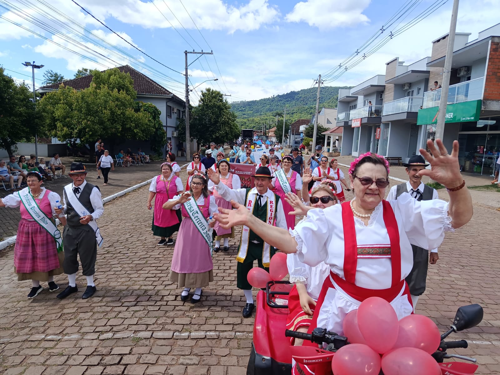 O desfile seguiu até as proximidades da Comunidade Evangélica, onde está montada a estrutura da Exposin. A programação segue durante o dia.