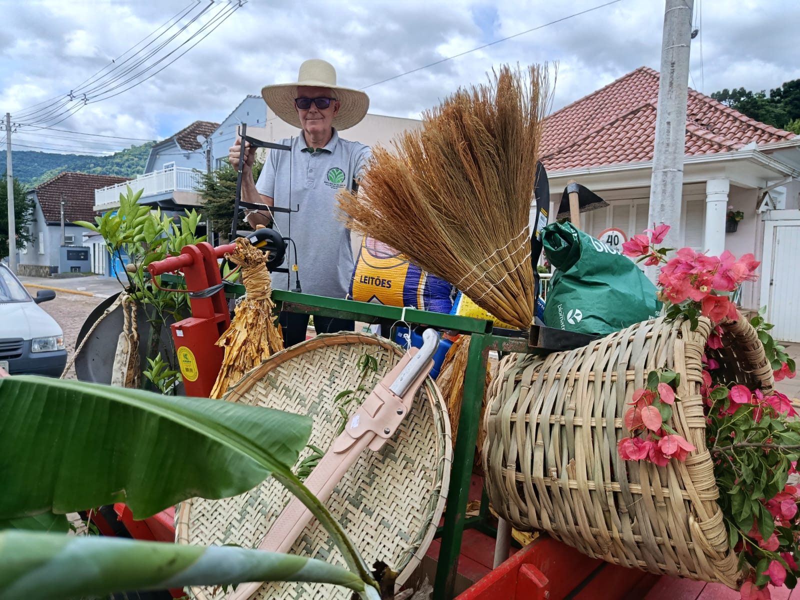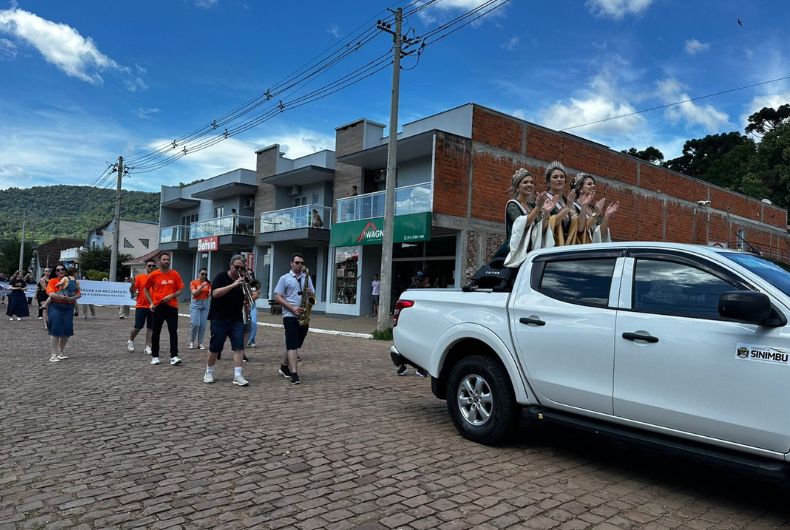 Com cadeiras postas nas laterais da Rua General Flores da Cunha, sinimbuenses e visitantes puderam acompanhar o desfile da 20ª Exposin. O foco é a reconstrução, com carros simbolizando o trabalho realizado para a recuperação do município depois da catástrofe ambiental de 2024.