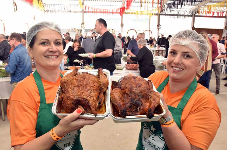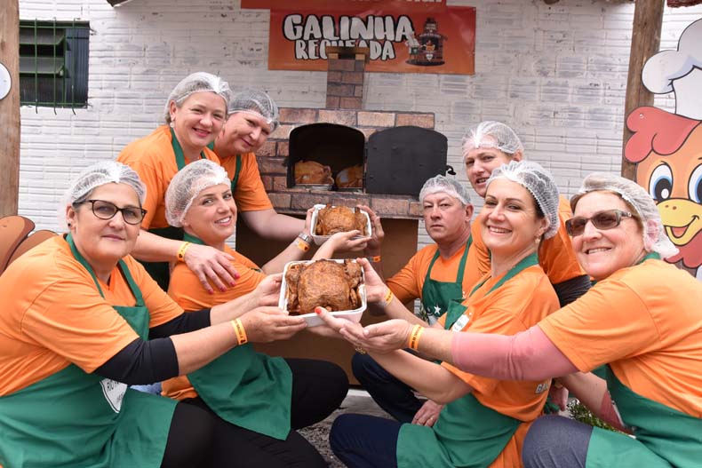 No preparo das galinhas recheadas, Mauro Scherer conta que começou os trabalhos na quinta-feira, 29, com os condimentos. As primeiras galinhas foram para o forno às 4 horas da madrugada deste domingo. “É um desafio enorme, mas o resultado final compensa. No sábado à noite ainda corremos atrás do preparo de mais algumas galinhas, porque poderia faltar”, observou.