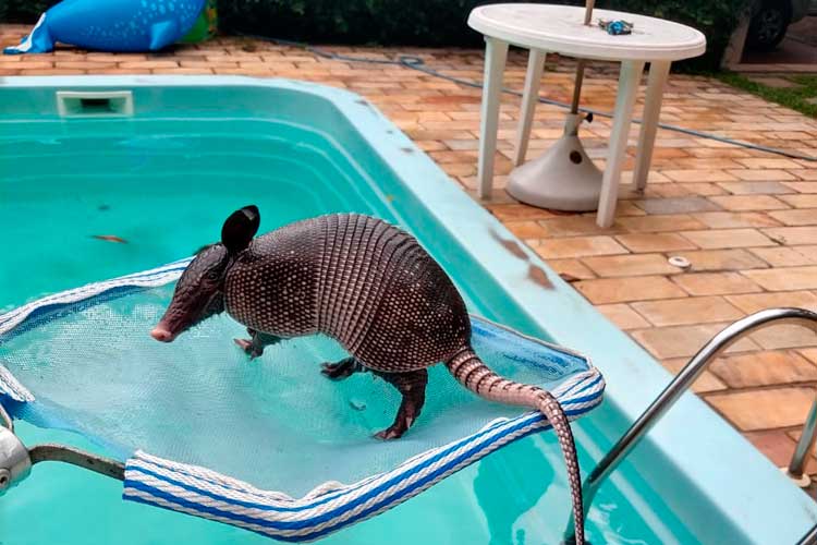 Nelsi disse que o animal resgatado tinha cerca de 40 centímetros, era inofensivo e que ela chegou a fazer carinho nele. Apesar de inusitada, a situação não é nova para o casal. “É a primeira vez que vimos tatu na nossa casa, mas já vimos porco-espinho e outros bichos que caem às vezes na piscina”, lembra a santa-cruzense.