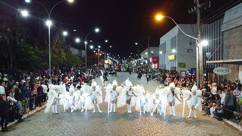 O clima ameno, com temperatura por volta dos 10 graus, esquentou na noite de sábado, 18, na passarela do samba da Rua XV de Novembro, no Centro de Encruzilhada do Sul, com o primeiro desfile do Carnaval deste ano. Depois de dois anos de interrupção por causa da pandemia, as escolas de samba retornaram com as evoluções mostrando o tradicional colorido, luxo e criatividade nas fantasias, além da cadência do samba comandado pelas baterias.
