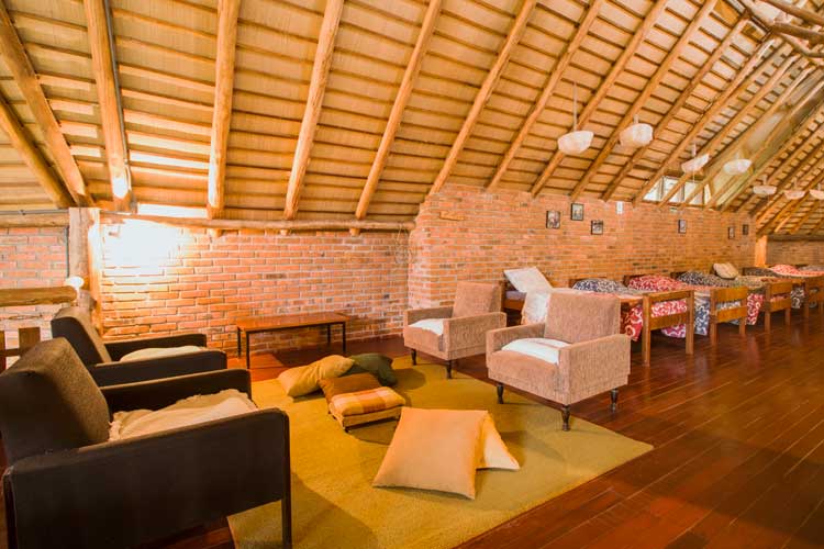 O acesso ao Rincão Gaia precisa ser agendado. A recepção só ocorre quando combinado. Na Casa Comunal, a edificação central da propriedade, a hospedagem funciona em esquema de hostel, com pensão completa. No mezanino, camas posicionadas uma ao lado da outra sugerem uma cena retirada dos filmes da Disney, da casa dos Sete Anões. Parece que a qualquer momento a Branca de Neve sairá do bosque e surgirá na sala.