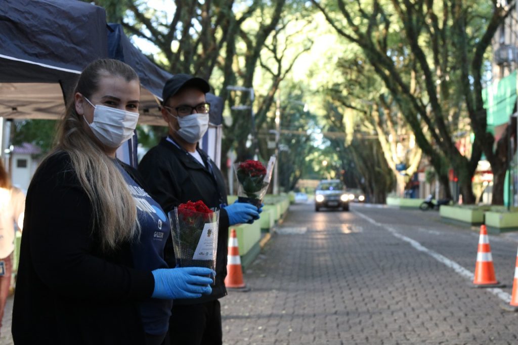 Jornalistas e outros profissionais da Gazeta estiveram espalhados em cinco pontos da cidade distribuindo flores pelo sistema de drive-thru, em que as pessoas que passaram de carro receberam a muda dentro do veículo.