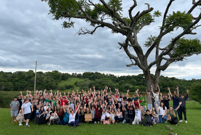O tempo colaborou, permitindo que a gincana aproveitasse as paisagens da propriedade rural. As atividades eram feitas no gramado, para os jovens desfrutarem da natureza e brincarem.