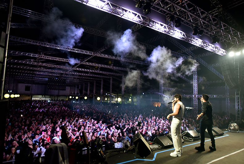 O show de Hugo e Guilherme iniciou pouco depois da meia-noite. Antes a Banda Sétimo Sentido garantiu a diversão do público que já aguardava, no espaço lotado. A dupla também aproveitou a passagem por Santa Cruz do Sul para atender a imprensa, concedendo entrevista coletiva, e os fãs, com quem tiraram fotos. Guilherme, inclusive, vestiu um traje típico para a recepção, antes da apresentação.