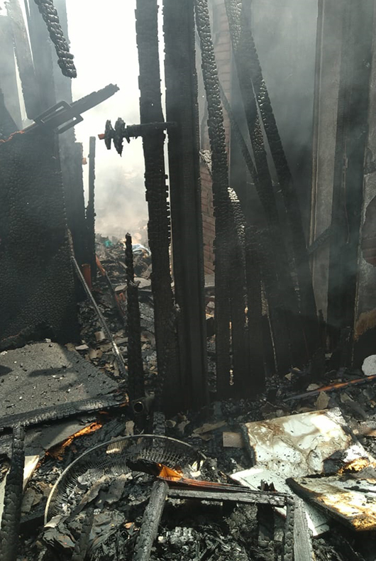 O fogo ainda causou danos a um imóvel vizinho. Em um dos cômodos, os vidros estouraram e uma parte do beiral foi queimada. Foram utilizados 8 mil litros de água para combate das chamas e rescaldo. Não há informações sobre o que pode ter causado o incêndio.