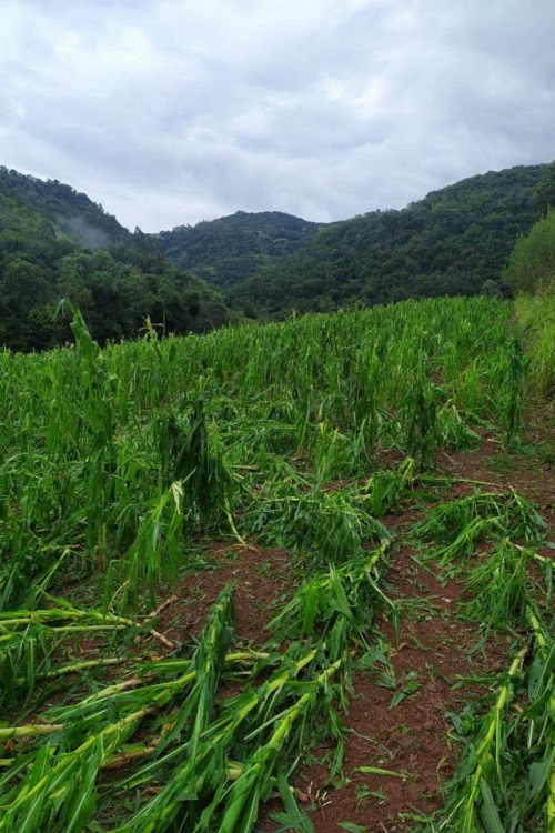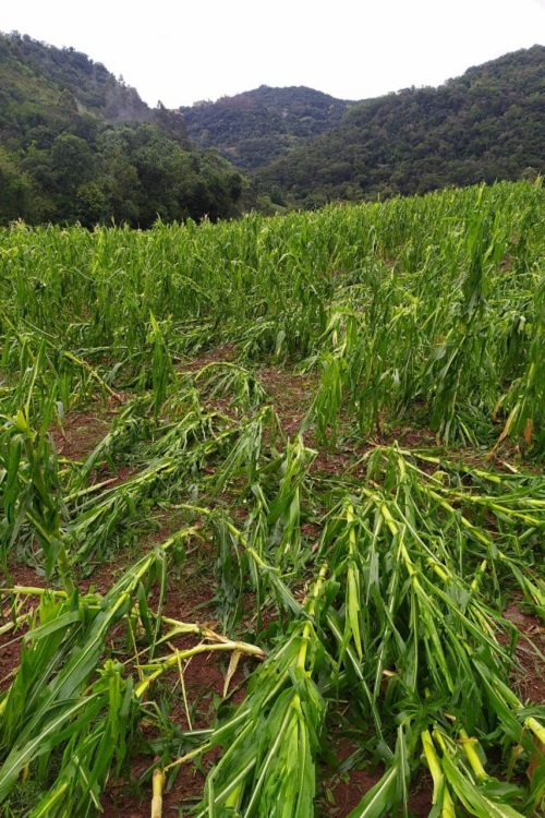 Ainda nessa sexta-feira, a equipe da Defesa Civil realizou visitas em cerca de dez propriedades das regiões mais atingidas, obtendo dados de pelo menos 15 lavouras danificadas. Segundo Neu, a cultura mais destruída foi a do milho, mas ainda houve registros de danos nas plantações de cana, mandioca, batata e outras.