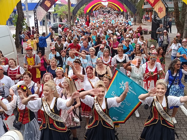 A Maturidade Ativa deu um verdadeiro show de alegria na caminhada festiva da 40ª Oktoberfest de Santa Cruz do Sul, realizada na manhã desta quinta-feira, 16, marcando a retomada da segunda etapa da Festa da Alegria.