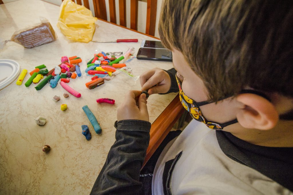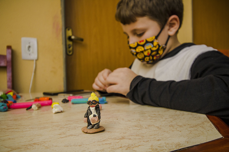 A mãe, Caty Oliveira, contou que a paixão por esculpir com massa de modelar surgiu aos 6 anos. Filho de pais separados, o menino produz a maior quantidade de peças quando está na casa do pai. “Ele adora modelar, e lá ele olha vários vídeos de desenhos. Parece que a imaginação flui melhor”, afirmou.