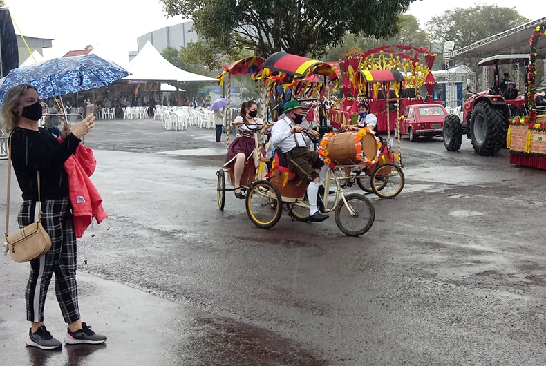 Presidente do evento, Roberta Pereira salientou que, apesar da chuva, o desfile é um atrativo para os visitantes. “É uma pena quando chove, mas faz parte, ainda mais sendo ao ar livre. O pessoal conseguiu acompanhar das praças de alimentação”, comentou. Roberta disse que o cenário é diferente no Dia da Maturidade Ativa, mas sem interferir na alegria. “Não temos tanta gente como de costume, mas estamos recebendo visitantes. Nossa avaliação é positiva, acima da expectativa. Quem vem para a festa acaba chamando outras pessoas.”