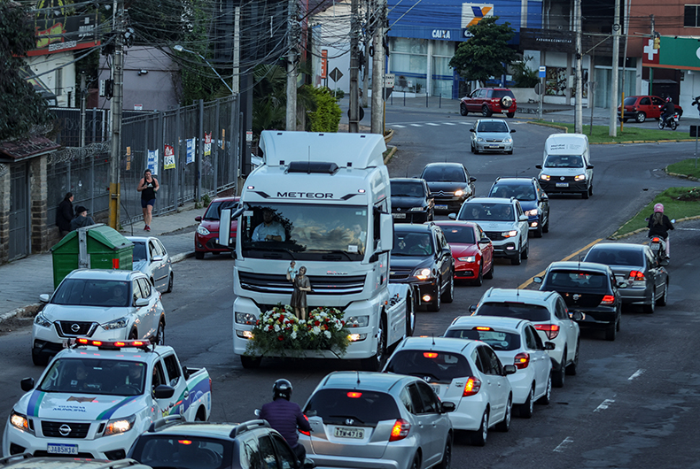 A Festa do Motorista da Paróquia Santo Antônio, de Santa Cruz do Sul, reuniu centenas de veículos na tarde de sábado, 15. O evento chegou à 35ª edição prestando homenagem a São Cristóvão, santo padroeiro dos motoristas. A programação teve início às 16 horas com uma missa celebrada pelo padre Fabrício Niederle. Na sequência, às 17 horas, os condutores entraram em caminhões, ônibus e vans e saíram em carreata pelas ruas dos Bairros Santo Antônio, São João, Arroio Grande, Ana Nery e Centro. Guarda Municipal e Brigada Militar balizaram o trânsito.