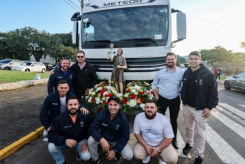 Além de motoristas autônomos, diversas empresas colocaram as frotas à disposição dos funcionários que quiseram participar. É o caso da Mondial Caminhões, que reinaugurou a concessionária em Santa Cruz e já planeja expansão. “Faz dois anos que retornamos e agora tivemos o prestígio de ceder o caminhão para conduzir a imagem de São Cristóvão e pontear a carreata”, afirma o gerente João Roberto Brancher. “Nós ficamos muito gratos à Paróquia Santo Antônio por realizar esse evento e por nos permitir fazer essa homenagem.”