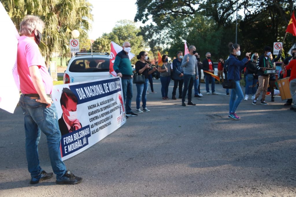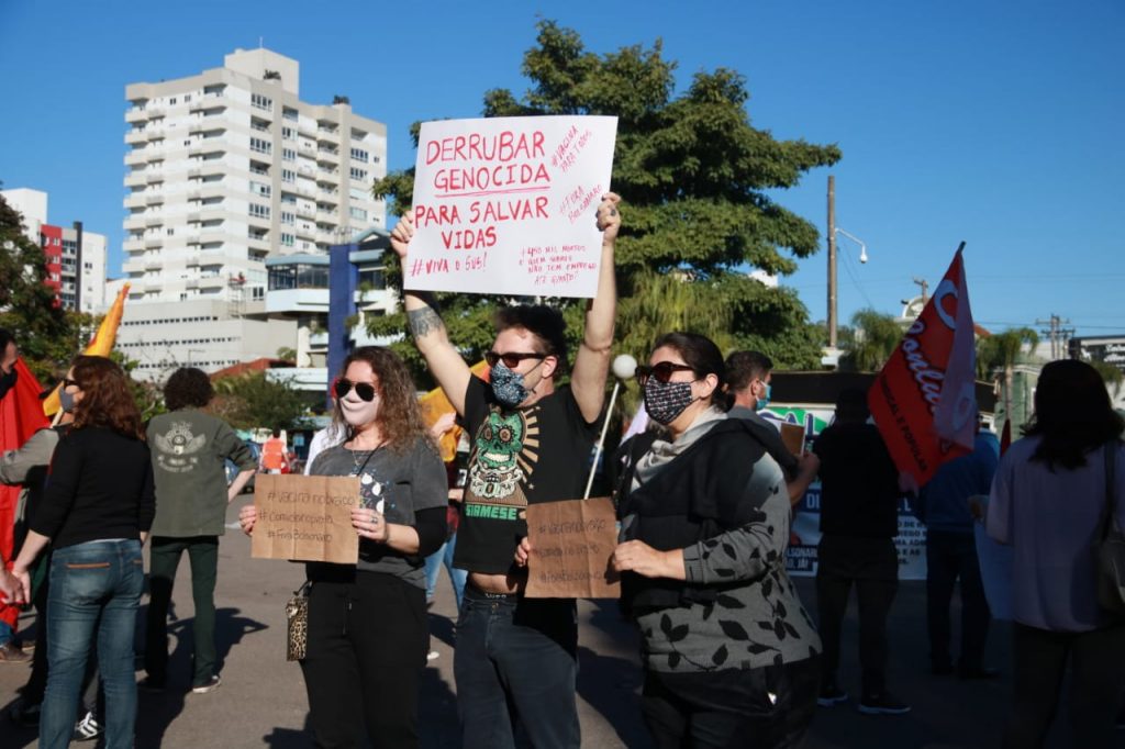 Nos cartazes, havia dizeres como “Fora Bolsonaro e Mourão”, “Genocida”, “Vacina no braço e comida no prato”, “Vacina já”, “Derrubar genocida para salvar vidas” e “Quando um povo protesta na pandemia seu governo é pior que o vírus”. A manifestação contou com centenas de pessoas ligadas aos partidos PT, PSTU e PSOL junto com os sindicatos Sinpro RS, Comerciários, Bancários e dos Vigilantes, mais o Movimento Mulheres em Luta e Conlutas entre outras. De acordo com a Guarda Municipal, a adesão foi de 300 veículos.