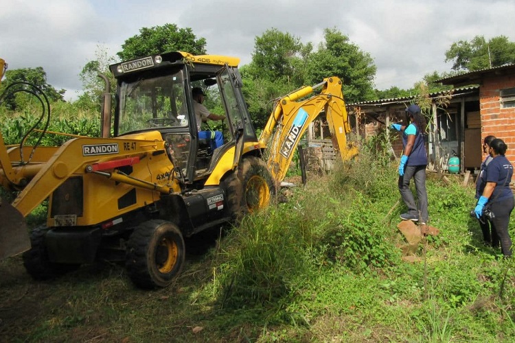 Ao todo, 20 funcionários entre agentes de endemia, de saúde, operários e fiscais da Vigilância Sanitária, operador de retroescavadeira e motorista de caminhão, participaram da ação. Em apenas uma casa, foi coletado material suficiente para encher meio veículo.
