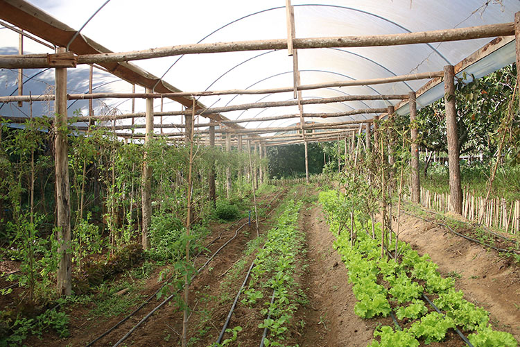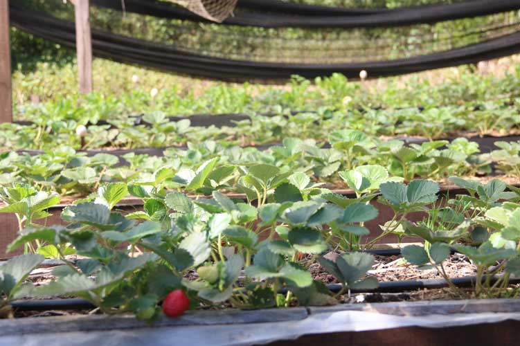Das fendas da parede de pedra brota água de uma nascente que nunca seca. Um eficiente sistema de captação criado por Ane garante todo o consumo da propriedade e a irrigação das hortas de verduras e morangos. “Aqui não falta água, tudo está irrigado e armazenado. São vários reservatórios com bombas que ajudam a irrigar as plantas”, descreve a proprietária.