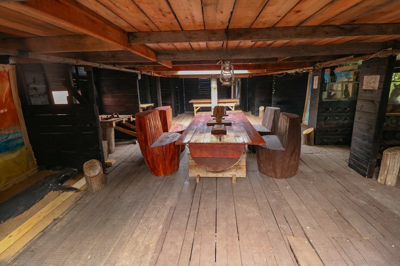 A embarcação, construída totalmente em madeira, conta com todos os compartimentos de acordo com a planta original. Putzke acredita que é necessário voltar a usar mais madeira, que retém gás carbônico, responsável pela maior parte da poluição atmosférica. A produção do metal aplicado na indústria exige a queima de muito desse material. “A madeira equivalente ao navio precisa ser queimada para produzir uma cadeira de metal”.