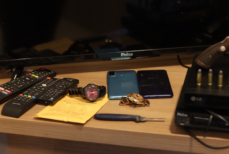 Segundo a BM, quando os criminosos cometerem o furto a residência, levaram a moto que foi utilizada posteriormente nos assaltos aos postos na sexta-feira passada. Outros objetos eletrônicos, como monitores, celulares e aparelho de som também foram confiscados para apurar a procedência. Enquanto a Força Tática realizava a ação, um casal chegou na casa em um Renault Clio vermelho. Este veículo já tinha sido identificado como usado pelo bando no furto a residência.