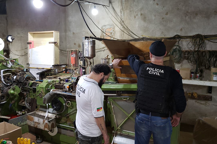 A Polícia civil desencadeou na manhã desta quinta-feira, 19, a Operação B.O. que investiga um esquema milionário de falsificação de cigarros no Rio Grande Do Sul. Em uma propriedade rural situada às margens da BR-392, no município de São Sepé, 17 pessoas foram presas, sendo seis brasileiros e 11 paraguaios. Maquinário e insumos para a fabricação de cigarros e caminhões para transporte também foram encontrados.