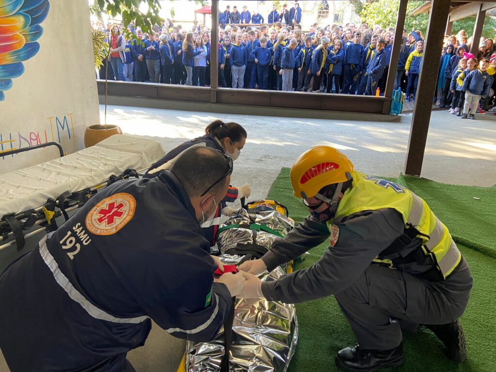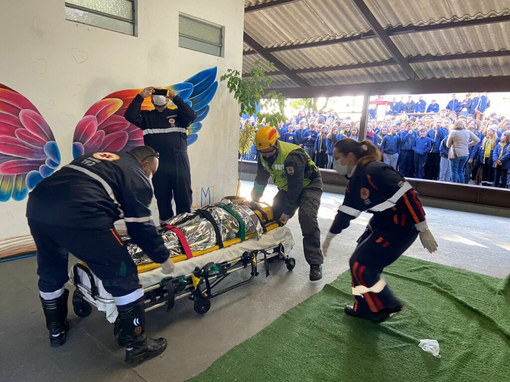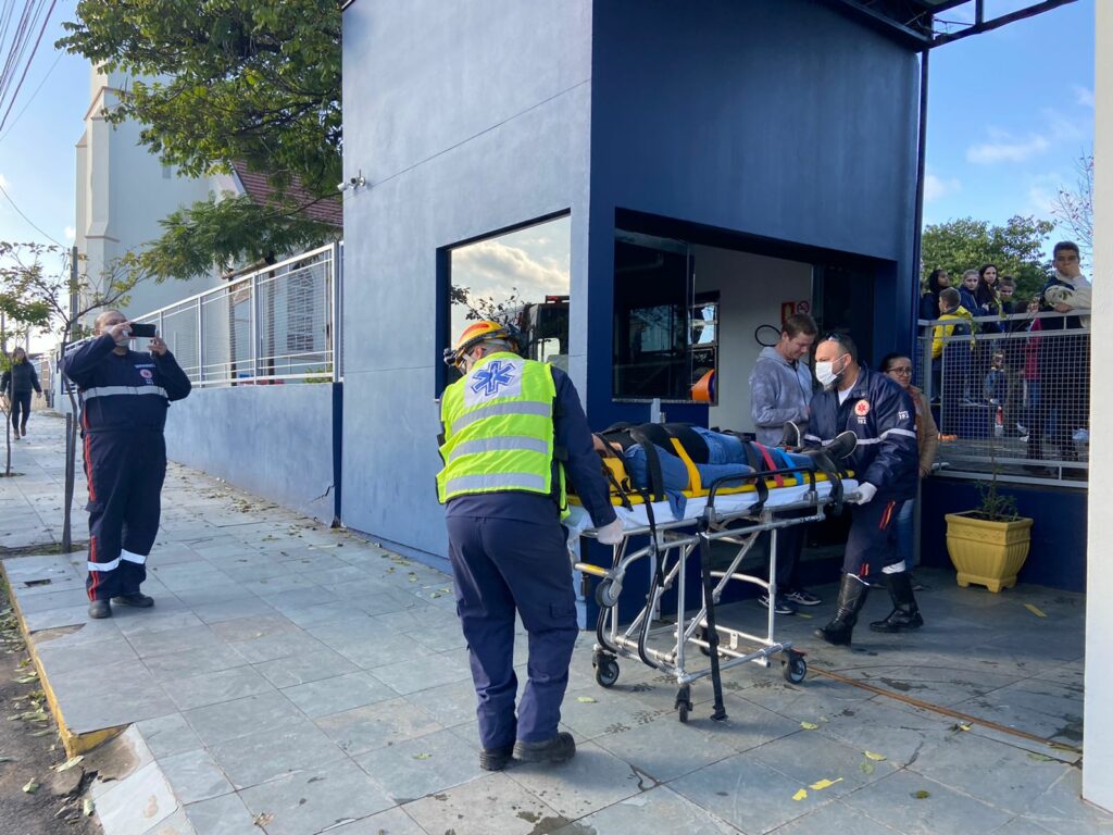 No simulado, os bombeiros foram acionados via telefone de emergência e deslocaram de forma rápida ao prédio da escola, sendo montado todo uma sistema para resgate da vítima. A iniciativa contou ainda com participação do Serviço de Atendimento Móvel de Urgência (Samu), Brigada Militar e da Fiscalização de Trânsito.
