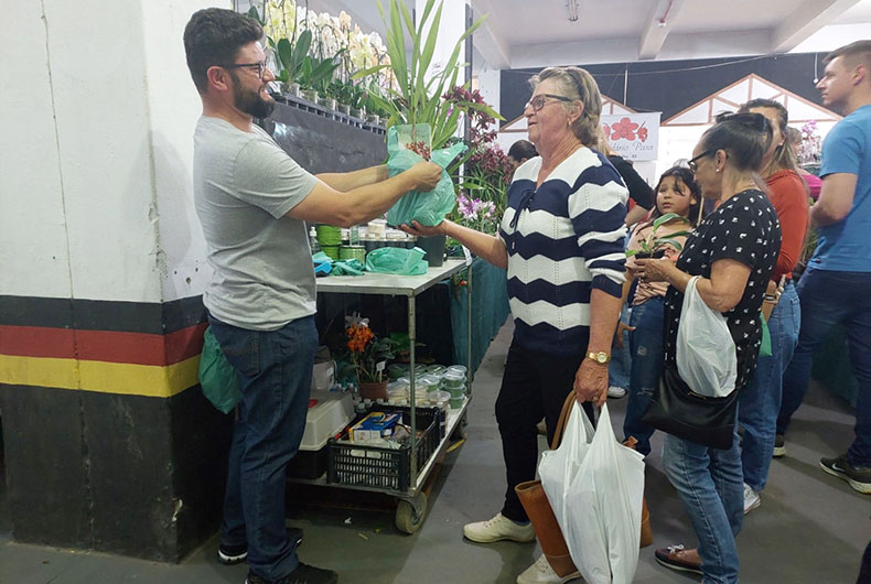 Dono do Orquidário Pasa, de Farroupilha, Rodrigo Pasa participou pela quarta vez da exposição santa-cruzense em um dos cinco estandes de venda. Ele salienta que Santa Cruz do Sul demonstra um apreço pelo cultivo de flores e plantas, o que fica evidente nos jardins e canteiros públicos. De acordo com Pasa, a exposição de Santa Cruz é uma das melhores do Estado. “Vale a pena investir para estar aqui. É uma cidade em que as pessoas gostam e compram plantas de qualidade.” (Assessoria de Comunicação da Prefeitura)