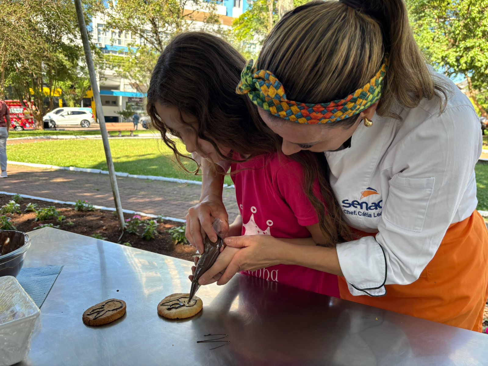 A Oficina “Fábrica Encantada de Biscoitos do Coelho” também teve vez durante essa manhã. Na atividade kids, os participantes inscritos decoraram biscoitos de amendoim, trazendo o tradicional recheio de ovos pintados para a receita, com desenhos de coelhos de chocolate. A oficina é ministrada pela chef Cátia Leal, coordenadora dos Cursos de Gastronomia do Senac, e organizada pelo Senac e pela Catterino Chocolates. A atividade acontece novamente durante à tarde, às 15h30 e às 16h15 e na quinta-feira às 10 horas, às 15 horas e às 16h15.