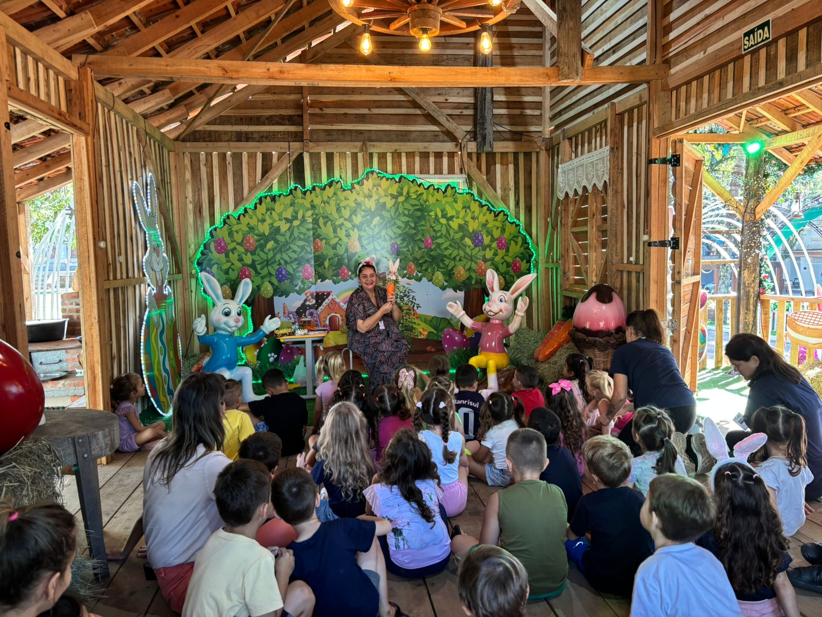 Intitulado “O doce maior da Páscoa é o amor”, o conto deixa os chocolates de lado para falar sobre gentileza, respeito, generosidade, além de relembrar como a família e os amigos são importantes e devem ser tratados da melhor forma possível. Depois, a oficina “Dance como um coelho”, ministrada pelo professor de dança Fabrício Schaefer, da Secult, agitou os alunos com coreografias divertidas. A famosa “caça aos ovos” também não ficou de fora da programação, com todos recebendo a mesma quantidade de doces. As atividades foram acompanhadas pela secretária de Educação, Jane Sabin.