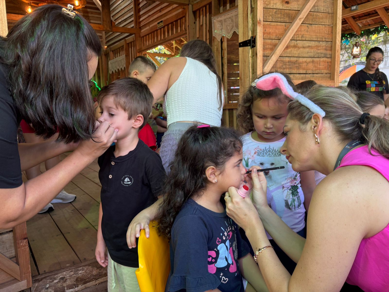 A programação da 1ª Osterfest de Santa Cruz do Sul continua nesta quarta-feira, 1°. Durante a manhã, mais de 40 crianças das EMEIs Pingo de Gente e Bem-me-Quer participaram de diversas atividades. Com todos já pintados de coelhinhos, os estudantes ouviram atentamente a contação de histórias da subsecretária de Cultura e Economia Criativa (Secult), Zoraia Pereira.