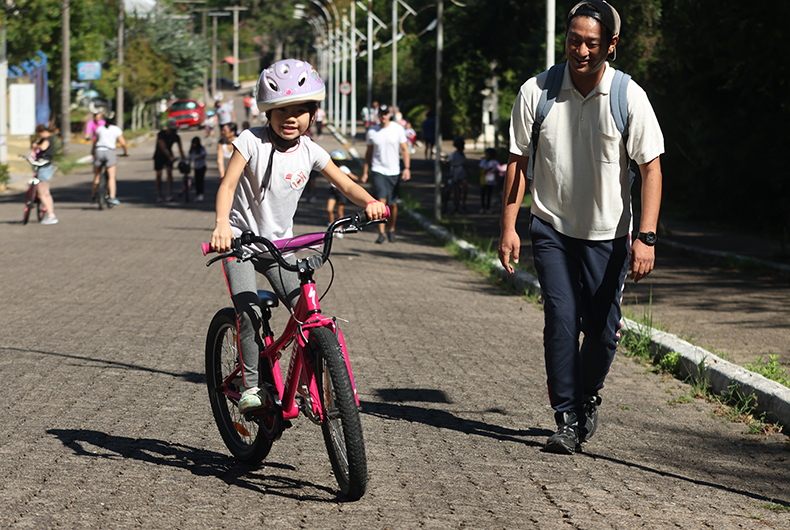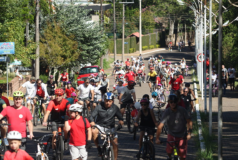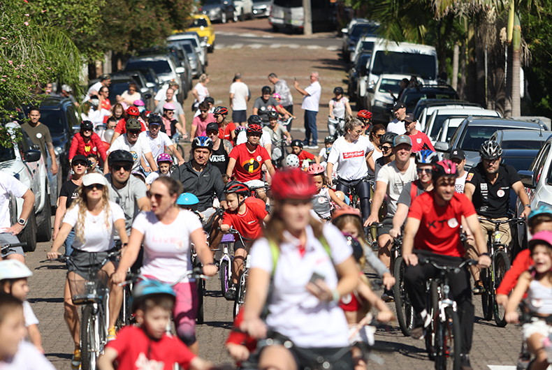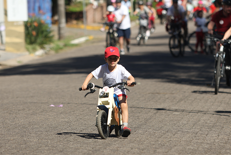Por volta das 9h30, um aquecimento bastante animado com os professores do colégio deu o tom para a sequência da manhã. Pelas 10h15, professores, alunos, pais e responsáveis saíram de bicicleta por vias do Bairro Higienópolis até o Parque da Gruta, de onde retornaram. A ação contou com o apoio da Secretaria Municipal de Segurança e Mobilidade Urbana.