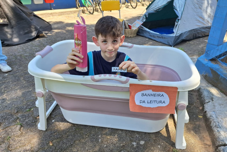 Já na pracinha com brinquedos, que teve sua estrutura ampliada neste ano, alunos se acomodaram nas redes de descanso debaixo de um pergolado com sombra, para compartilhar a leitura. “É gratificante ver o resultado. Mesmo que a gente faça dinâmicas de leitura o ano todo, em um ambiente acolhedor, percebe-se que a motivação é muito maior”, concluiu a diretora Tatiane.