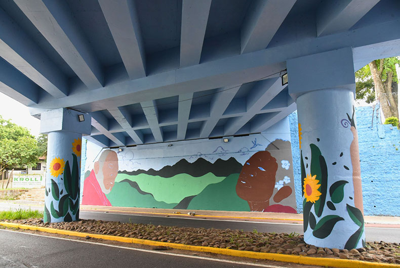 Dentro do projeto Mais Cor, Mais Vida, idealizado pela Secretaria de Cultura de Santa Cruz do Sul, mais um ponto da cidade está foi contemplado ao longo da semana. Na chamada ponte seca, localizada na Avenida Paul Harris, próximo do 7º Batalhão de Infantaria Blindado (7º BIB), artistas do Ateliê Vivências Urbanas realizaram trabalho em grafite.