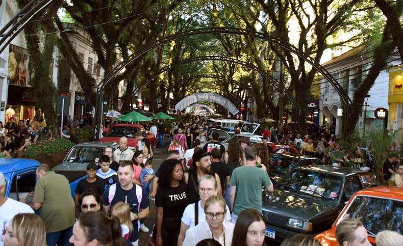 A cada edição do Old School Day, Santa Cruz do Sul revive clássicos que marcaram época e impactaram gerações. Na desse sábado, 18, não foi diferente. Desde as primeiras horas da manhã até o fim da noite, a nostalgia tomou conta do centro da cidade – especialmente no entorno da Praça da Bandeira –, com a exposição de veículos antigos; objetos de decoração e utensílios domésticos do Mercado das Pulgas; além de ampla variedade de objetos e acessórios musicais. Conforme o organizador do evento, Alberto Más e Blum, 30 mil pessoas participaram da programação.
