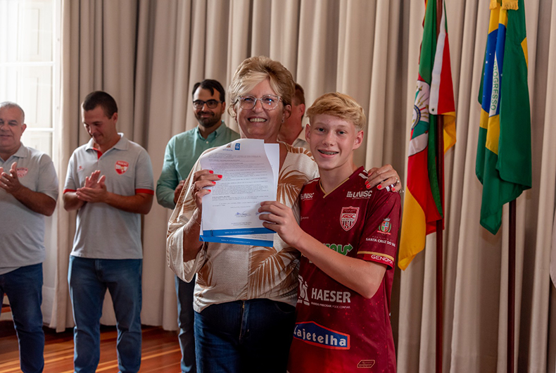 Também a prefeita Helena Hermany reforçou a contribuição do Genoma Santa Cruz na formação de crianças e jovens por meio de uma ocupação saudável como o futebol. Além disso, olhando para os pais que acompanhavam a cerimônia, falou da importância da participação deles na vida dos filhos. “Às vezes, o pai ou a mãe trabalham demais e falta tempo, mas não podemos nos descuidar das nossas crianças, temos que estar ao lado delas”, aconselhou. Já o secretário municipal de Desenvolvimento Social e Esporte, Everson Carvalho de Bello, referiu-se ao esporte como fonte de saúde e mencionou a magnitude do projeto.