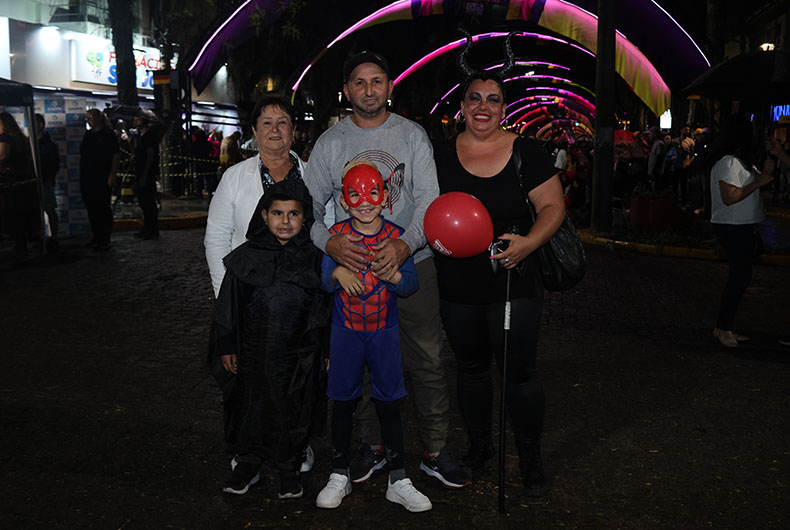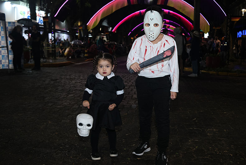 Assim como Lara levou para a rua do Túnel Verde uma possibilidade de negócio, Leandro Pacheco dos Santos aproveitou com os filhos Lorena e Leonardo. As crianças viram a fantasia do Halloween, cultuada na escola e na vizinhança, com a brincadeira do “doces ou travessuras”, ganhar uma proporção gigante, tomando toda a principal via comercial de Santa Cruz do Sul. “Sou natural de Bagé, mas já moro aqui há algum tempo. É a segunda vez que viemos, e as crianças curtem demais”, afirma.