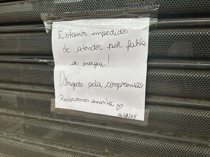 Josiane relatou que o trabalho seguia normalmente, quando se ouviu um estouro. Ela informou que, por 30 minutos após a queda da energia elétrica, os funcionários tentaram atender ao público, o que se tornou inviável logo depois. “Pela demanda do calor, pelas pessoas que vinham pagar crediário, mas a gente estava sem sistema, não tinha como continuar atendendo e acabamos fechando”, afirmou a gerente.