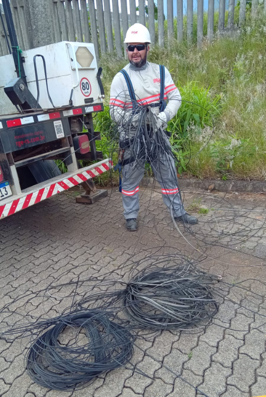 Começou na manhã desta terça-feira, 29, uma série de mutirões de limpeza para a retirada de cabos de postes inativos, rompidos ou pendurados sobre as vias de Santa Cruz do Sul. Por determinação do Ministério Público, o trabalho será desenvolvido pela RGE a cada duas semanas, sempre nas terças-feiras, das 8 horas ao meio-dia. O primeiro local contemplado foi o Bairro João Alves, na Rua Francisco Antônio Gonçalves, esquina com a Rua Matheus Rafael Raschen. O trabalho foi finalizado por volta das 9h30.