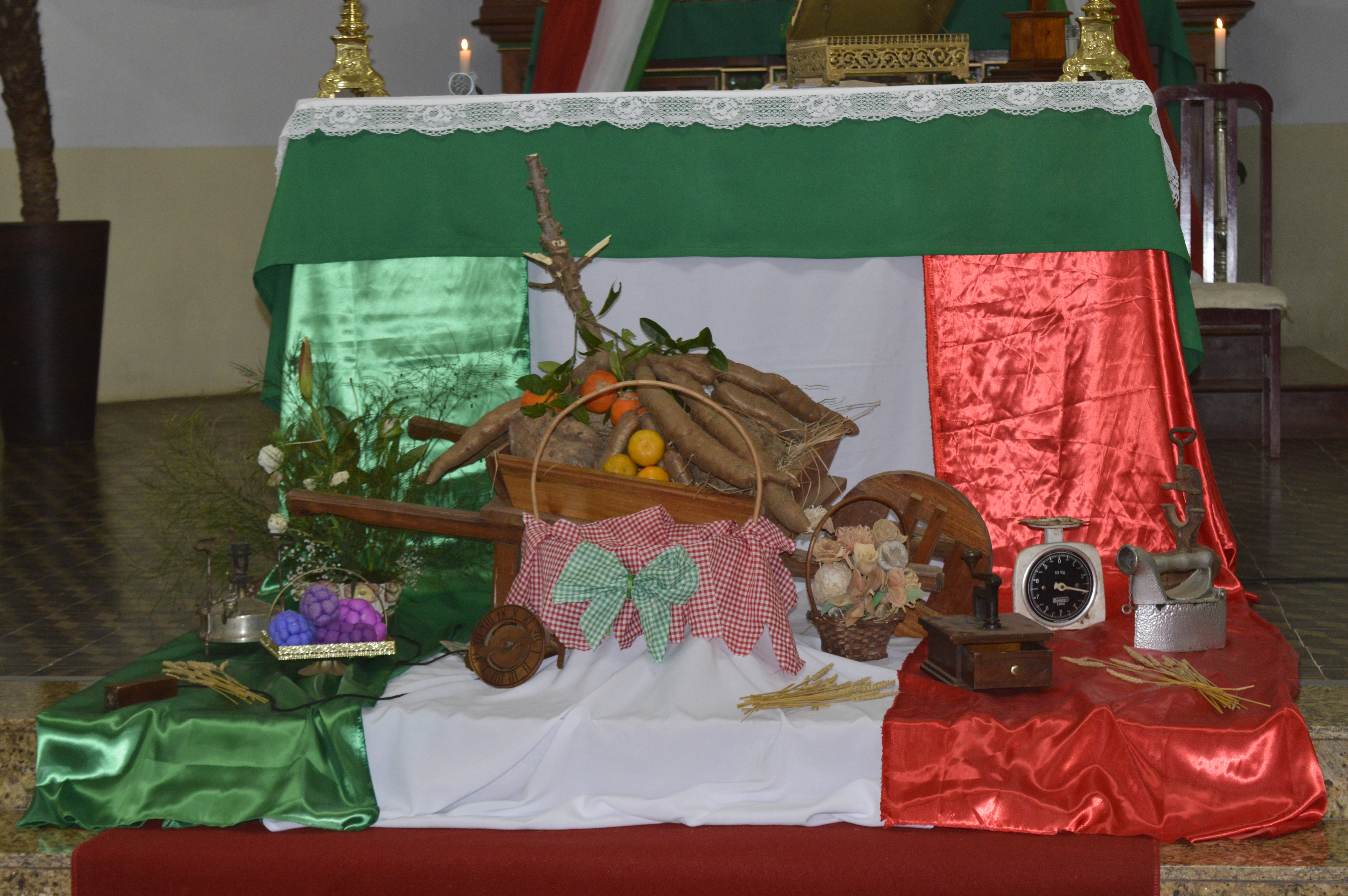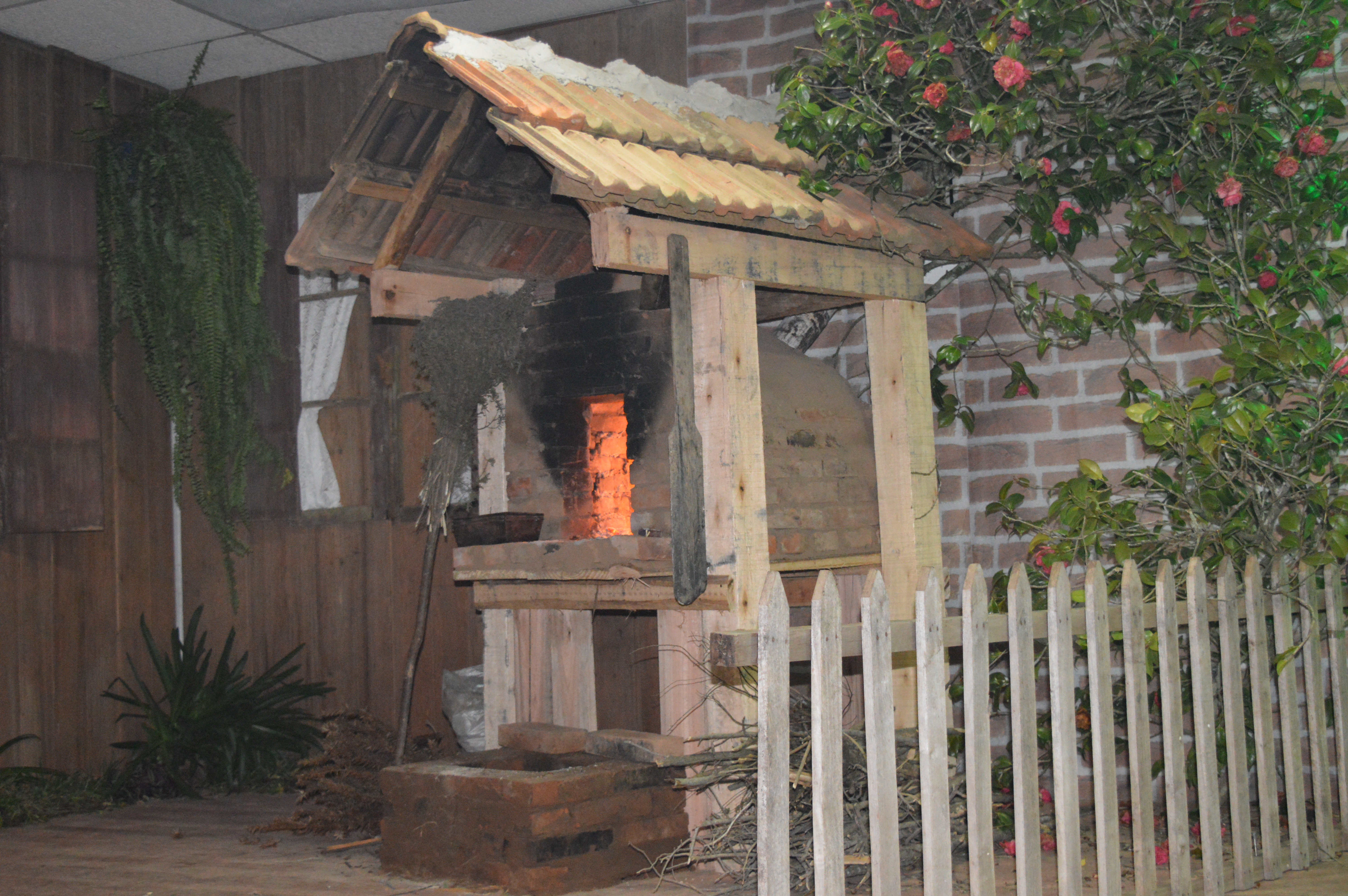 Destaque para a reprodução de um forno de pedra na decoração junto ao palco, ressaltando a temática desta edição “Il pane: cibo sacrato” – O pão: alimento sagrado, lembrando do importante alimento à mesa das famílias.