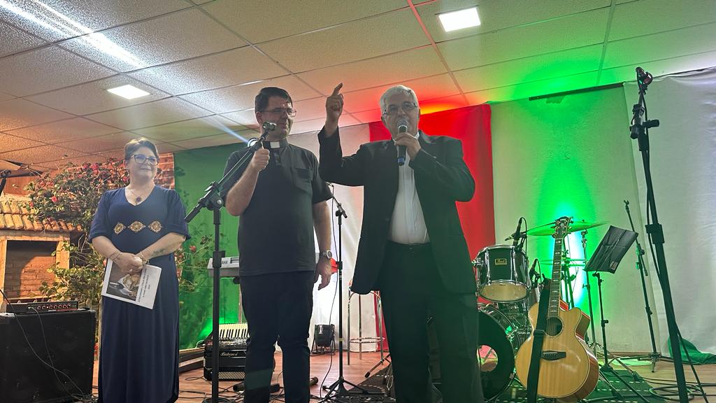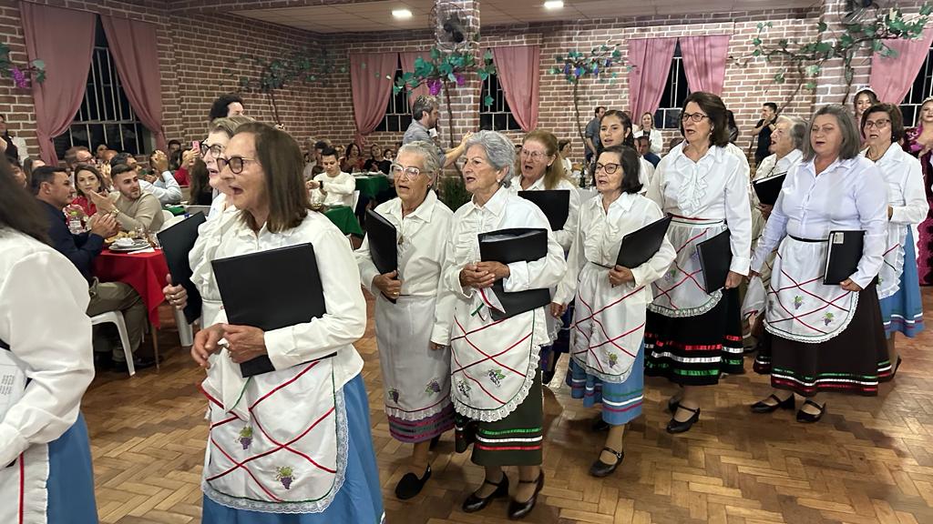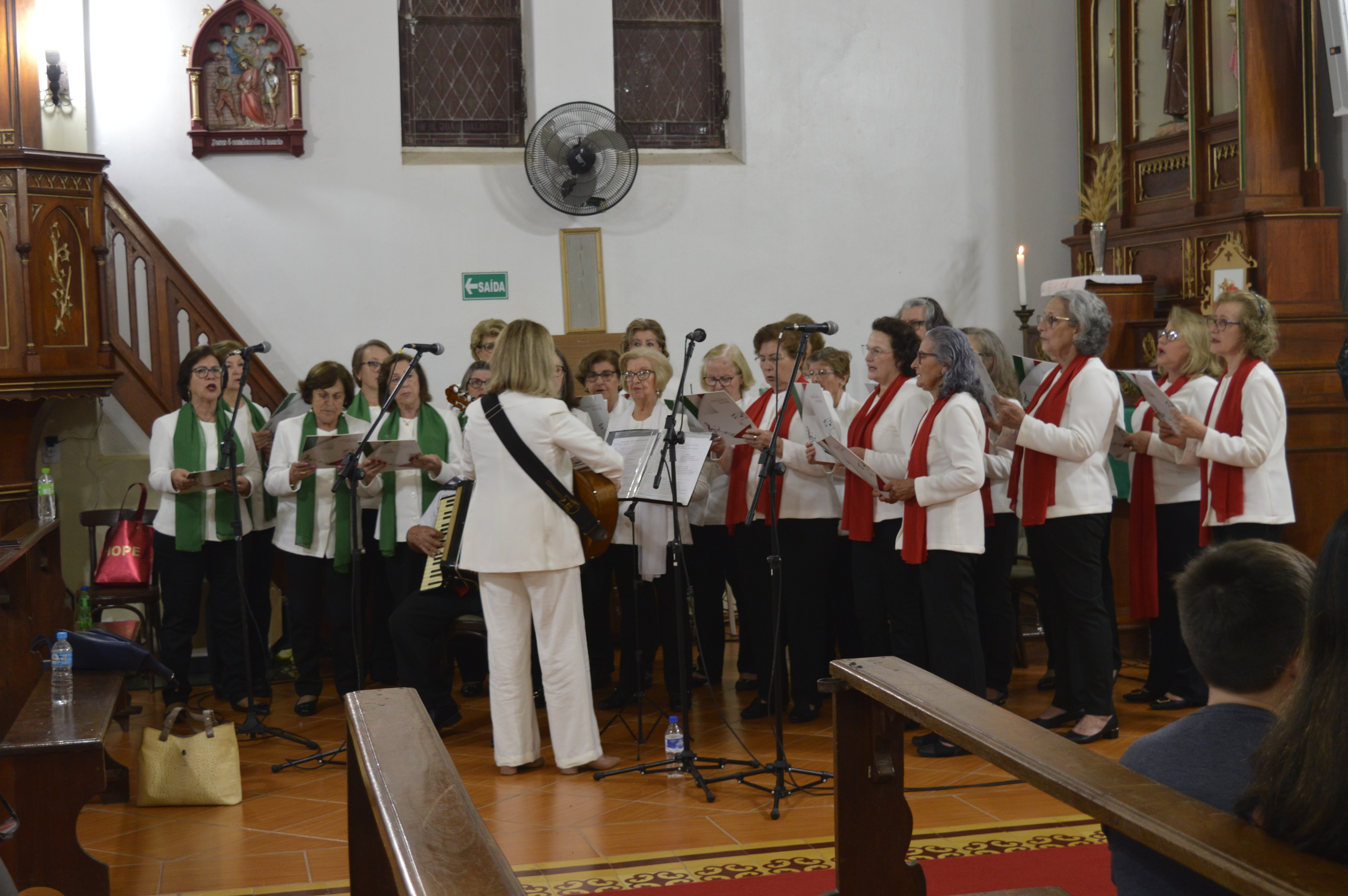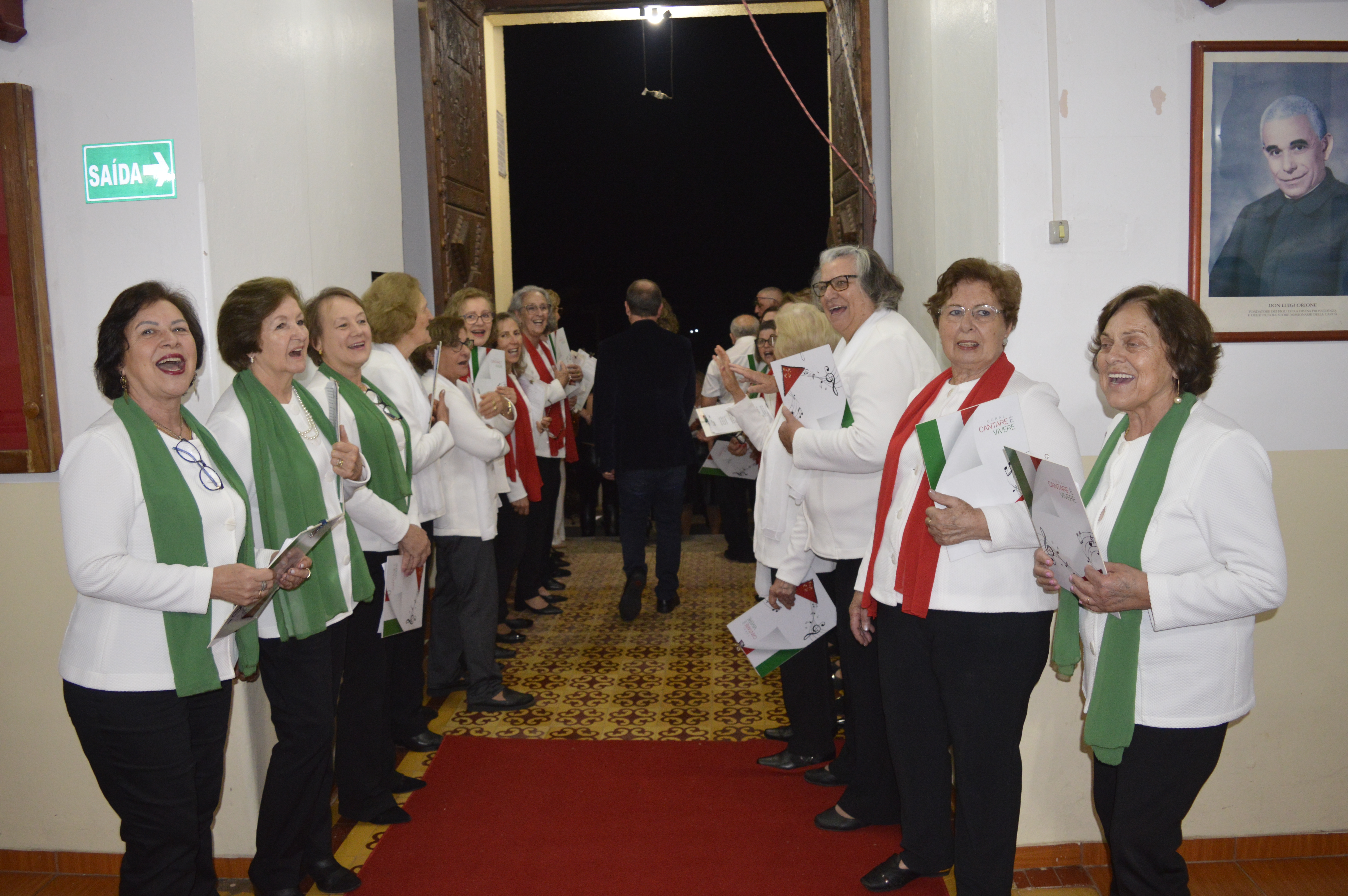 Logo após os participantes foram recepcionados pelo Coral Luciano Pavarotti no andar inferior do Salão Paroquial.