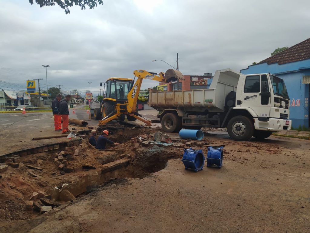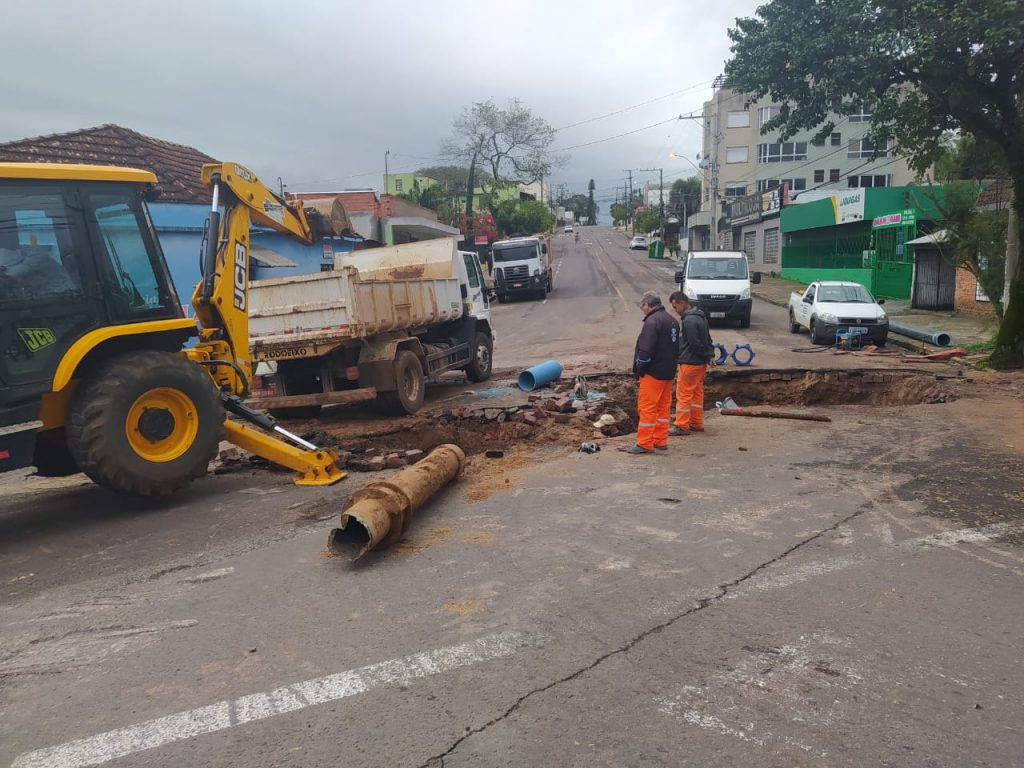 Conforme a gerente local da Corsan, Rosângela Freitas, a equipe trabalha nas esquinas das ruas Felipe Jacobus e Euclydes Kliemann, que também estão bloqueadas para o trânsito. O rompimento afeta uma rede de 300 milímetros. Para os trabalhos, o fechamento do registro que abastece a cidade ocorreu na madrugada e a abertura foi feita às 7h30.