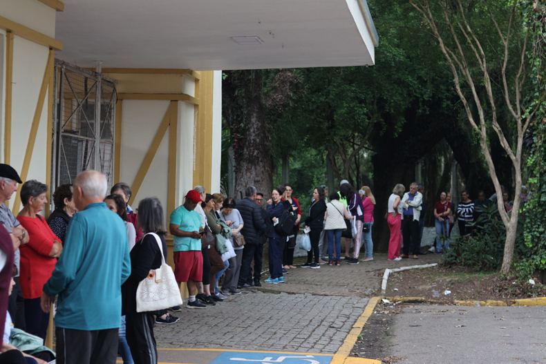 A moradora de Linha João Alves, Asta Schmidt, de 61 anos, chegou cedinho para buscar a sua Sacola do Bem