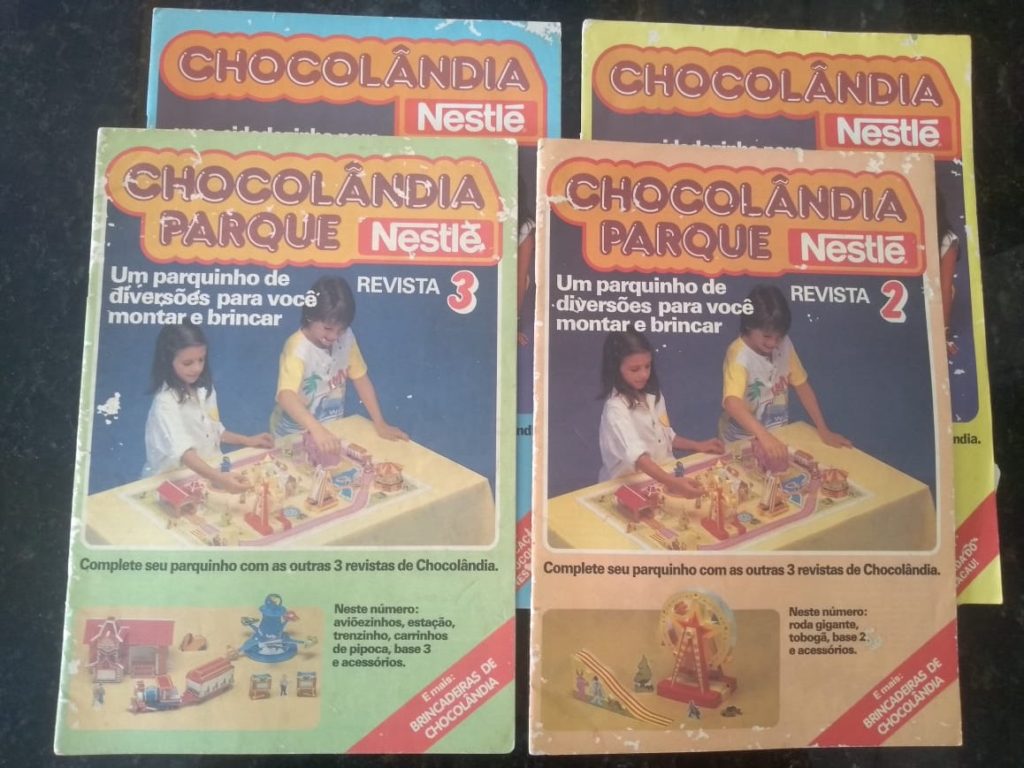 Entre as lembranças mais calorosas dos que vivenciaram os anos 80 está uma iniciativa saborosa daquela época. Chocolândia Nestlé Cidadezinha fez parte da nossa segunda edição do Espaço Nostalgia. E eis aqui a promoção que foi lançada em 1987. Assim, hoje vamos apresentar a edição II, Chocolândia Parque. Como na primeira edição, você juntava seis embalagens de chocolate e trocava por uma das quatro revistas, que tinham em seu interior partes de um parque. As embalagens eram trocadas nas Casas Pernambucanas, parceira da promoção.