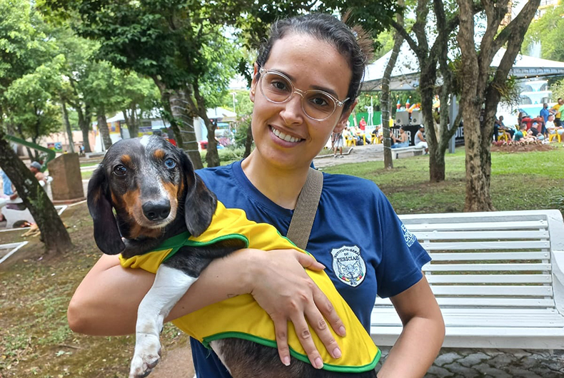 Também acompanhando o jogo, estava Tamires Rispoli Silva, de 31 anos, e a cachorrinha Cora, uma cadela da raça linguicinha, que estava vestida com uma camiseta número 10 do Brasil. “Comprei esse ano a roupinha, para passear e torcer”, disse Tamires. A mascote deu sorte no jogo e, segundo a tutora, Cora vai continuar usando, para manter a boa sorte para os brasileiros.
