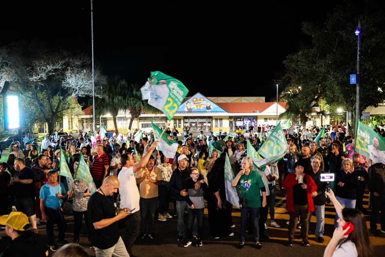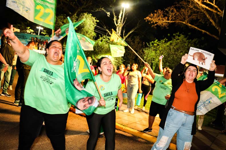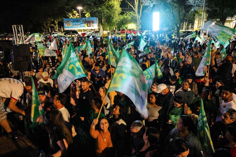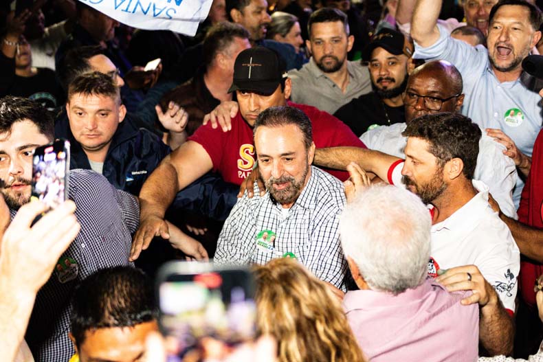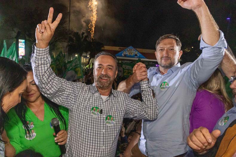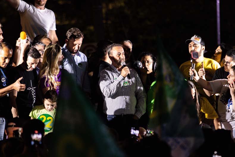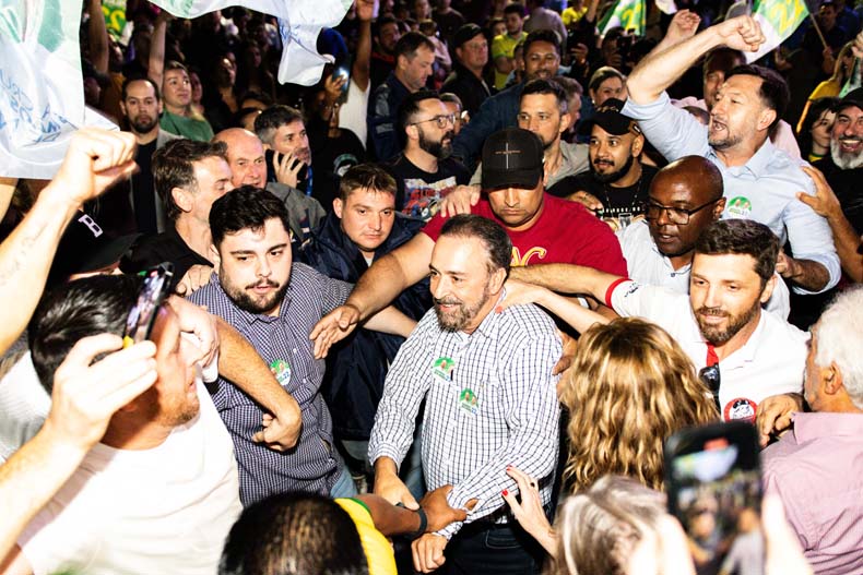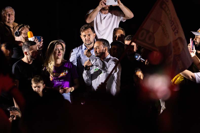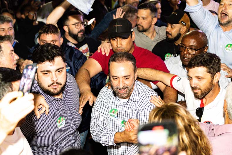 Após ser eleito prefeito de Santa Cruz do Sul neste domingo, 6, Sérgio Moraes (PL) se reuniu com a família e apoiadores em frente ao Parque da Oktoberfest. Em clima de muita festa e alegria, ele comemorou a vitória nas urnas. Com bandeiras e o jingle da campanha ao fundo, a comemoração do eleito movimentou o Centro. Emocionado, ele agradeceu aos santa-cruzenses. Também, expressou gratidão à equipe, ao vice-prefeito eleito, Alex Knak e à família.