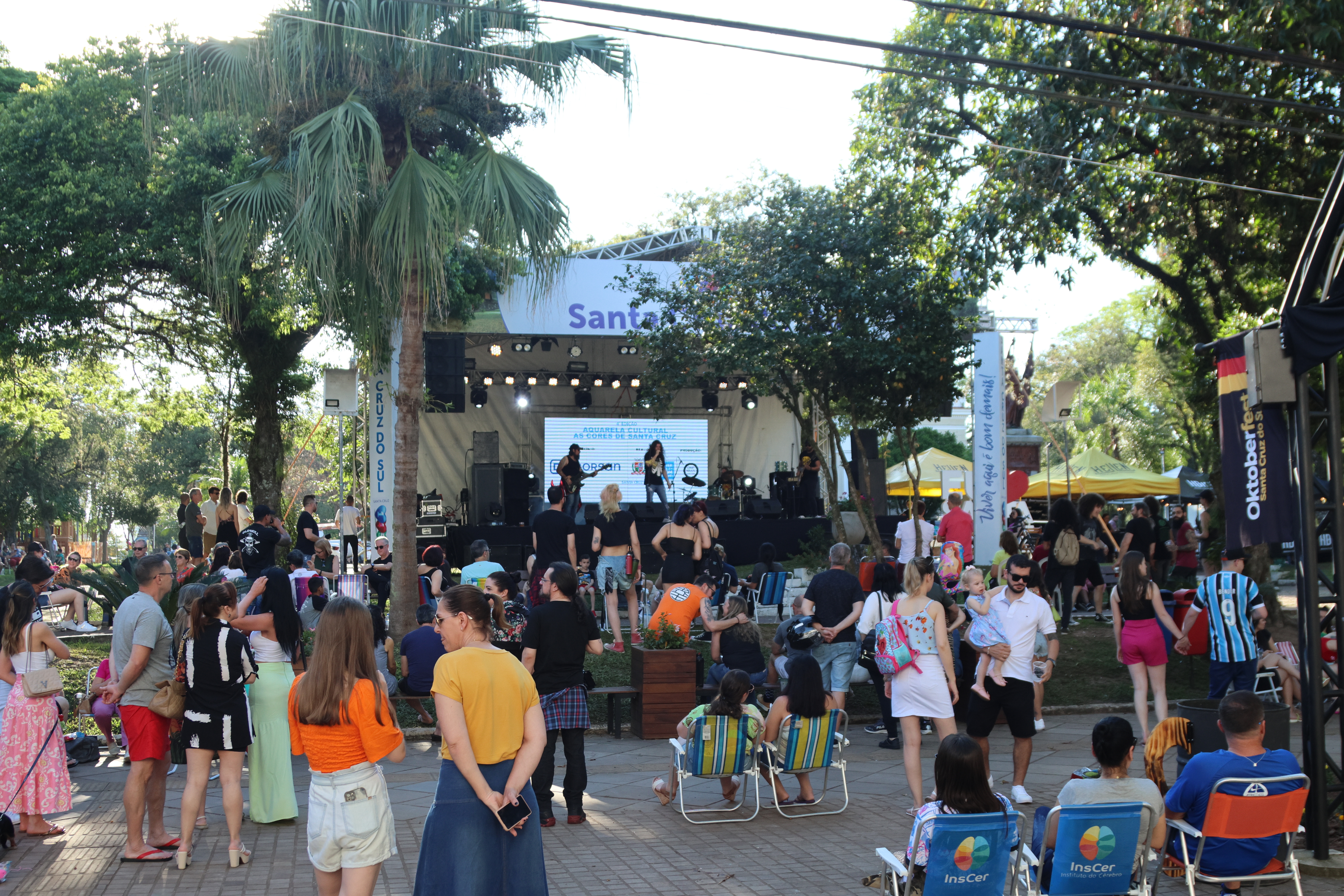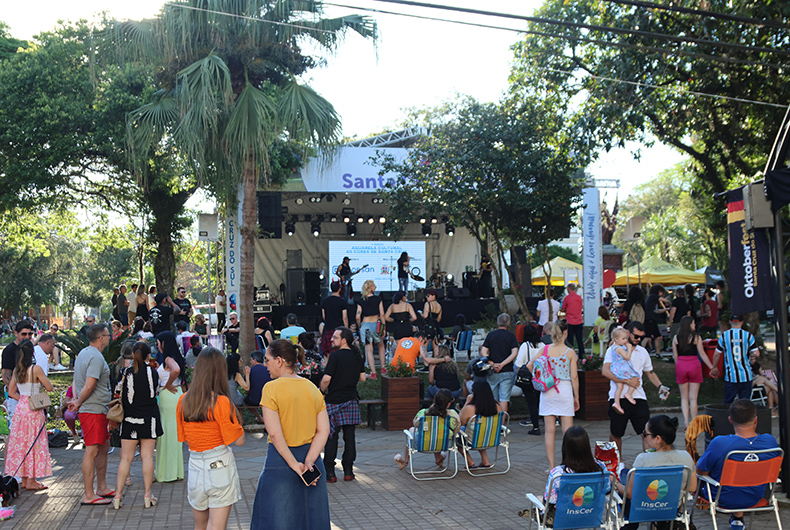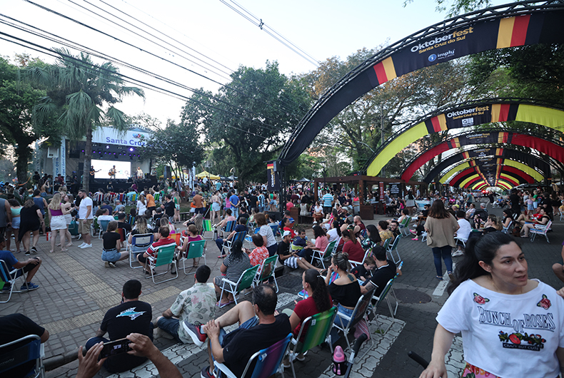 Um grande público lotou a Praça da Bandeira neste domingo, 28, nas imediações do Palacinho, para curtir o show da dupla Claus e Vanessa. A apresentação do casal gaúcho faz parte do evento Aquarela Cultural, que integra a programação dos 145 anos de Santa Cruz do Sul. A quadra da Rua Marechal Floriano, entre a Borges de Medeiros e Sete de Setembro, foi fechada para acomodar as pessoas, que levaram cadeiras para aproveitar o evento.