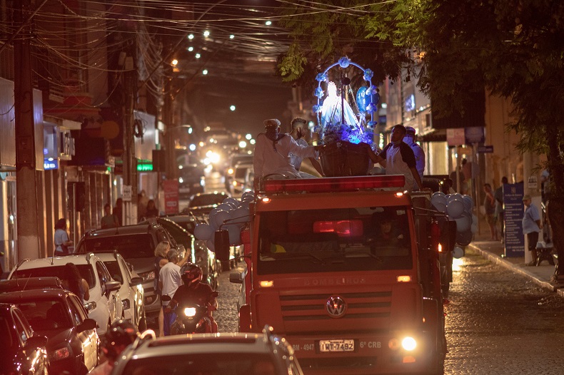 Como forma de manter a tradição, enquanto aguardavam a chegada do caminhão do Corpo de Bombeiros, que levou a imagem durante a procissão motorizada, uma corrente manteve o público com certo distanciamento de Iemanjá, pois na estátua o ritual não permite que seja passado álcool. “Temos que garantir que tudo seja feito de acordo, porque depois a imagem retorna para dentro da casa”, explica.