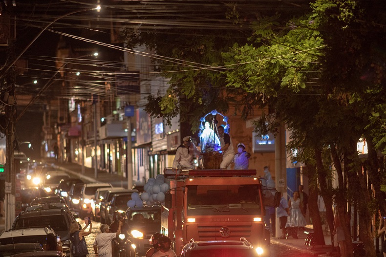 Puxada pela Brigada Militar e pelo Corpo de Bombeiros, procissão de veículos percorreu a cidade na noite dessa terça-feira