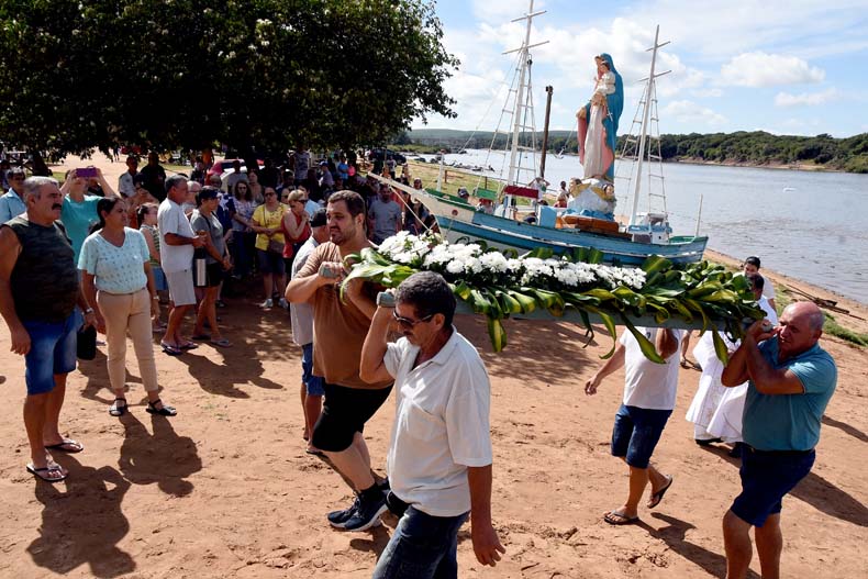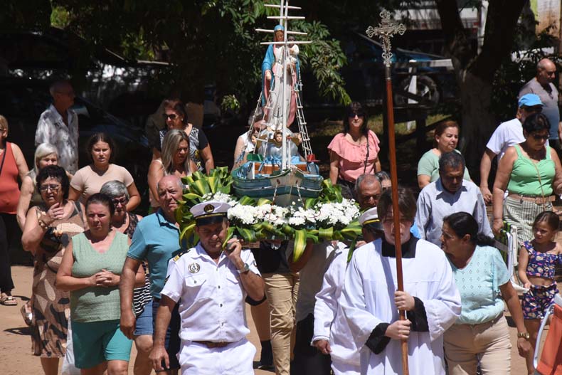 A bordo de uma embarcação enfeitada com bandeirolas e com o nome “Deus” pintado no casco, a imagem da Santa percorreu as águas do Rio Jacuí, partindo da Praia dos Ingazeiros até o Balneário Porto Ferreira e retornando ao ponto inicial. Após a procissão fluvial, os fiéis se juntaram sob uma tenda onde ocorreu a celebração em louvor à Nossa Senhora dos Navegantes, promovida pela paróquia Nossa Senhora do Rosário.