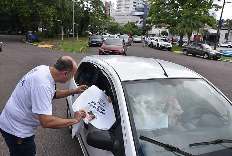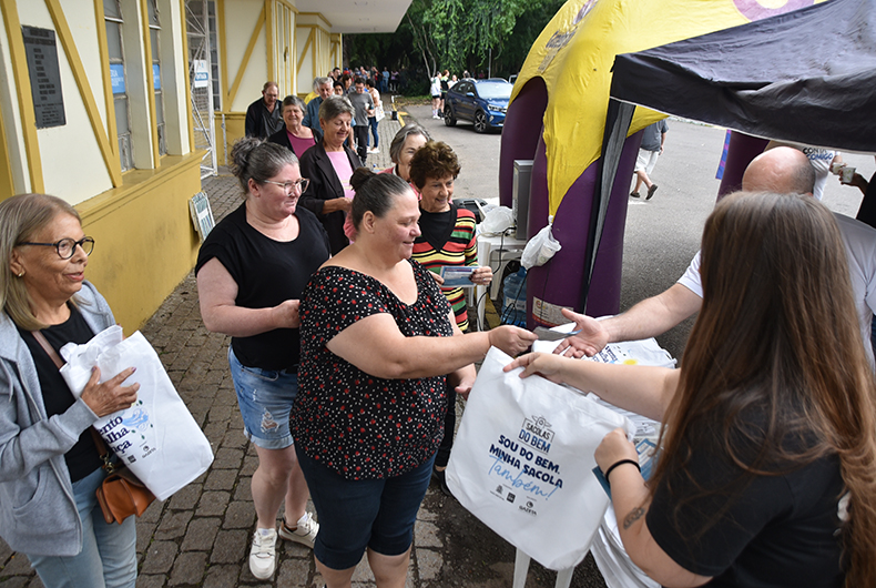 A manhã ensolarada e de temperatura amena registrada neste sábado, 9, foi um convite para um passeio ao ar livre. Também foi um presente para aqueles que, munidos dos cinco cupons recortados das edições da Gazeta do Sul do último mês, compareceram em frente ao pórtico do Parque da Oktoberfest, no Centro de Santa Cruz do Sul, para retirar o seu exemplar das Sacolas do Bem. Esta foi a última distribuição de 2024.